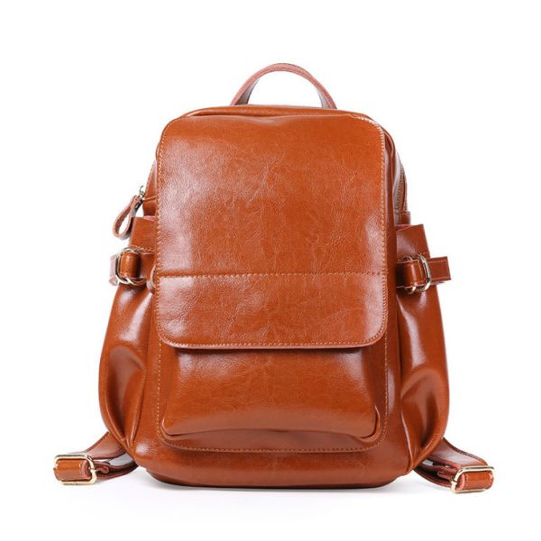 Retro Backpacks Cowhide Double Shoulder Bags Genuine Leather Travelling Bag Images |